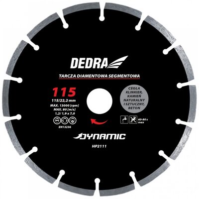 Dedra do cięcia HP2117E 250 mmod 79 złPorównaj ceny1→Tarcza diamentowa segmentowa marki DEDRA o średnicy 250 mm z serii DYNAMIC jest przeznaczona do cięcia betonu, cegły, klinkieru, kamienia naturalnego i sztucznego.