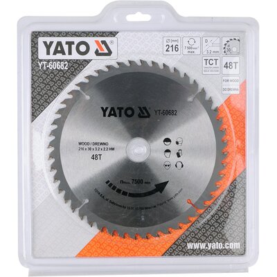 Yato do cięcia YT-60682 216 mmod 27 złPorównaj ceny8→Tarcza widiowa przeznaczona do poprzecznego, wzdłużnego i kątowego cięcia drewna, płyt drewnopochodnych, tworzyw sztucznych. Zapewnia szybkie i precyzyjne cięcie. Zęby z nakładką z węglika wolframu. I więcej→lość zębów 48.