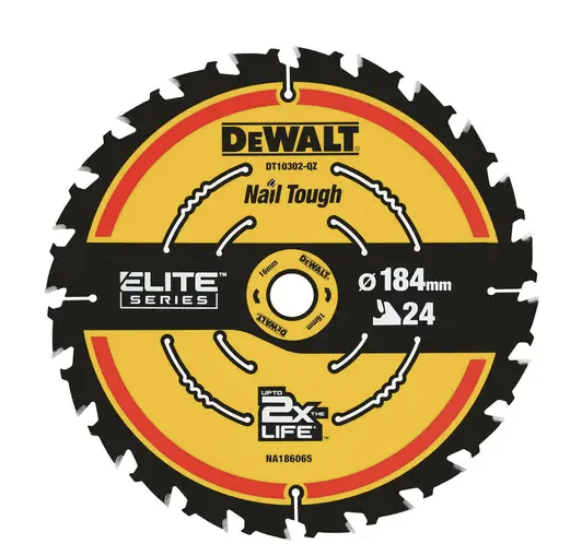 DeWALT Extreme 2nd Fix Circular Saw Blade 184mm 16mm Bore 24T DT10302-QZod 50 złPorównaj ceny8→Tarcza do piły, dla drewno z gwoździami, sklejka, 185 mm, 24 ząb