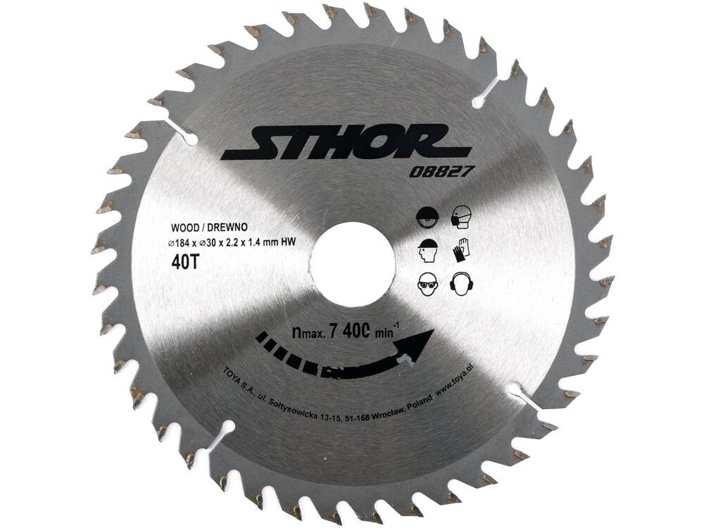 Sthor Piła tarczowa z węglikiem 184x40x30 08827 0.35kg 08827od 14 złPorównaj ceny5→Tarcza z nakładką widiową, wlutowaną mosiądzem. Przeznaczona do poprzecznego i kątowego cięcia drewna twardego materiałów drewnopochodnych niektórych twardych tworzyw sztucznych /zalecane cięcie próbn więcej→e/ Dodatkowe informacje: kąt natarcia dodatni ok. 10 stopni uzębienie naprzemianskośne typ BA rzaz ok. 3.5 mm
