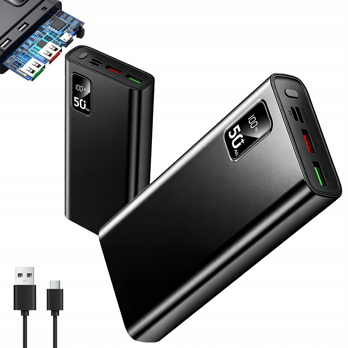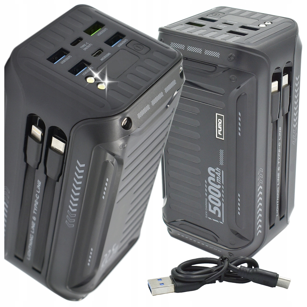 Mocny Powerbank Power Bank z kablami 50000mAh 4xUSB Usb-c Szybkie Ładowanie 200 złAllegroDostawa: w Polsce Złóż skargęKup!
