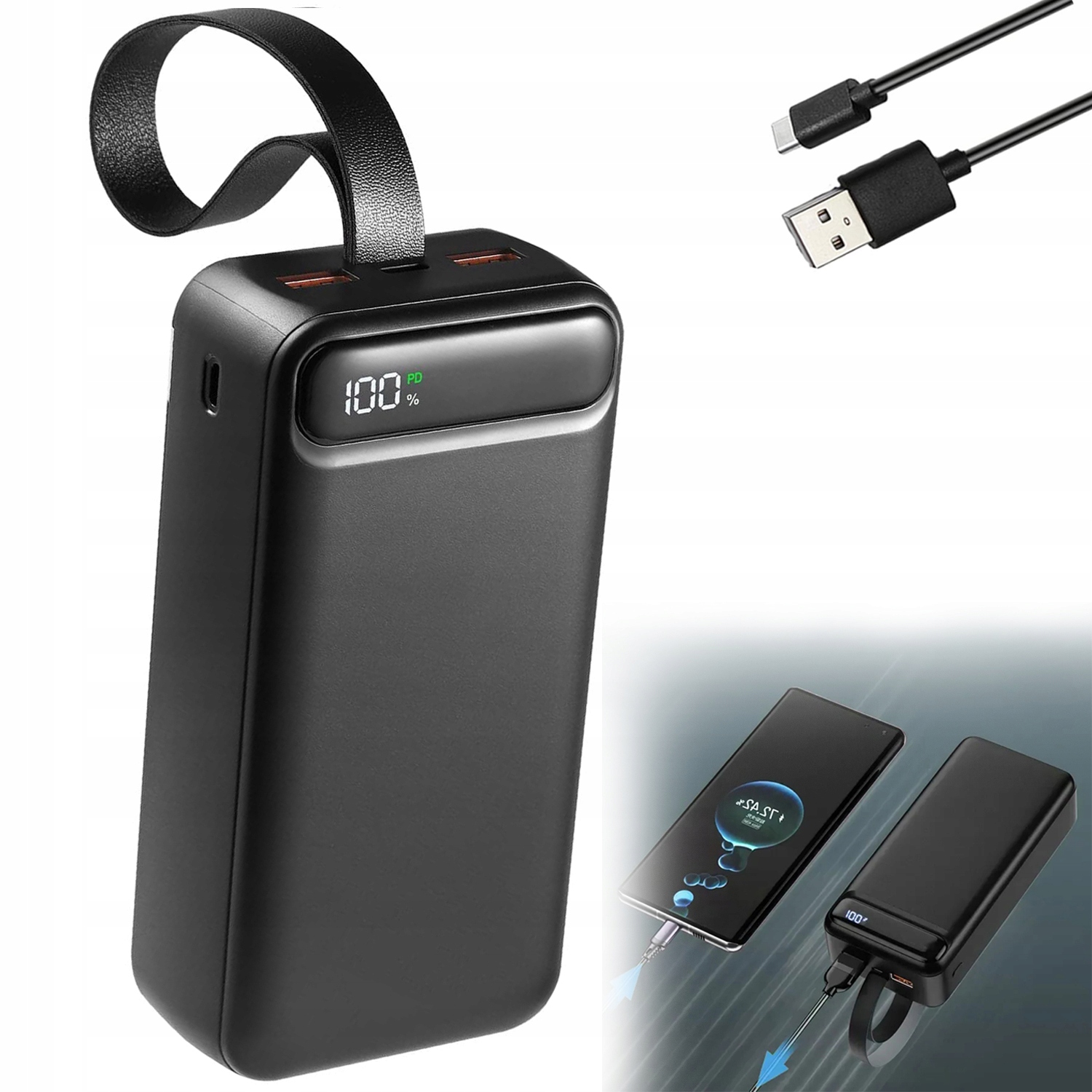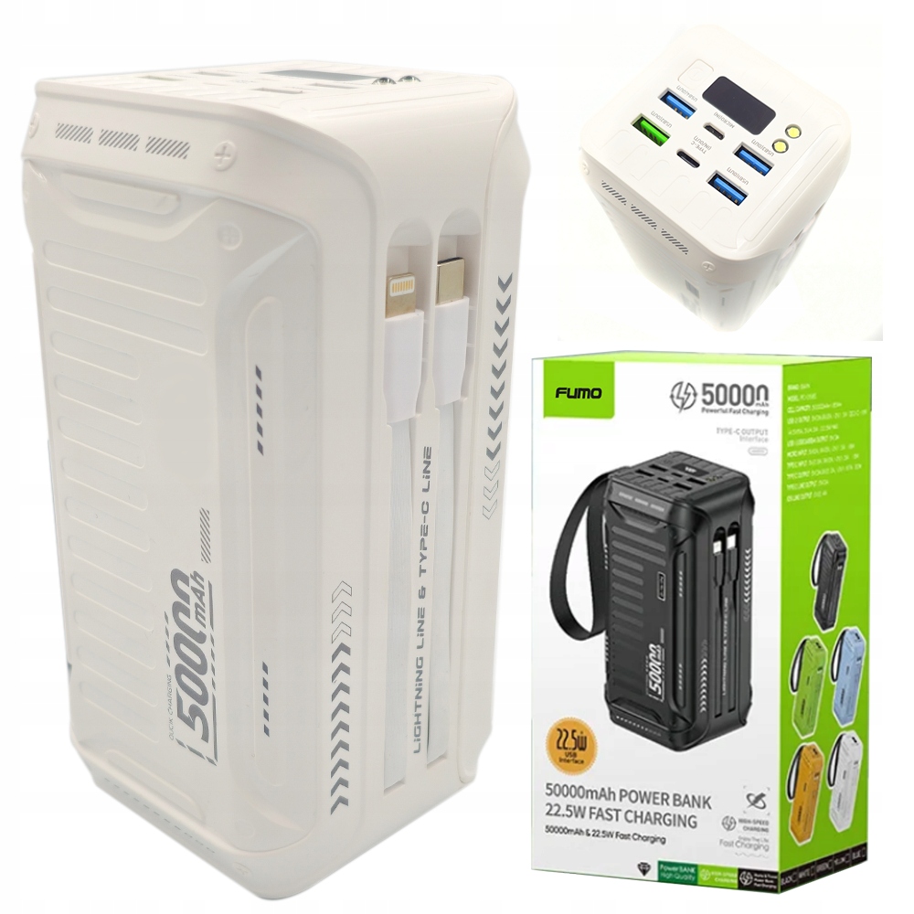 Mocny Powerbank Power Bank z kablami 50000mAh 4xUSB Usb-c Szybkie ŁadowanieMocny Powerbank Power Bank z kablami 50000mAh 4xUSB Usb-c Szybkie Ładowanie 160 złAllegroDostawa: w Polsce Złóż skargęKup!