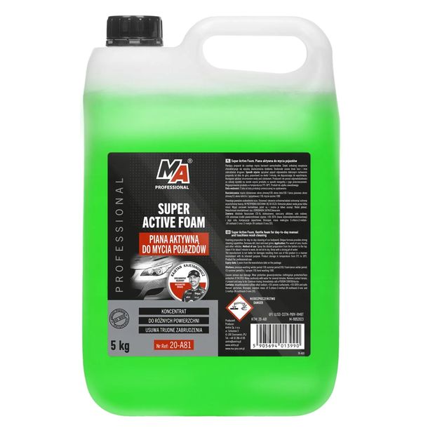 Moje Auto MA PROFESSIONAL Super Aktywna Piana Do Mycia Samochodu Karoseri 5kgod 30 złPorównaj ceny3→ Piana aktywna MA Professional 5KG Pieniący preparat do częstego mycia karoserii samochodów. Dzięki unikalnej recepturze charakteryzuje się wysoką skutecznością działania. Doskonale usuwa brud, kurz więcej→i inne zabrudzenia drogowe. Sposób użycia: spryskać pojazd odpowiednio dobranym roztworem preparatu od dołu do góry, pozostawić na około 1 minutę, nie dopuszczając do wyschnięcia. Następnie spłukać strumieniem wody pod ciśnieniem. Sposób użycia : Spryskać pojazd odpowiednio dobranym roztworem preparatu od dołu do góry. Pozostawić na około 1 minutę, nie dopuszczając do wyschnięcia. Następnie spłukać strumieniem wody pod ciśnieniem.