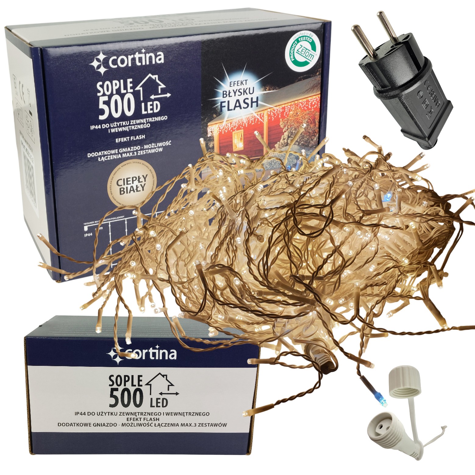— girlandy z poziomego drutu i zwisające z niego sople o podłużnym kształcie. Sople mogą mieć efekt topienia uzyskany przez naprzemienne oświetlenie świateł pod lodową skorupą od góry do dołu. Tworzy to efekt spadającej kropli. Girlandy tego typu służą zarówno do dekoracji mieszkań, jak i do stworzenia noworocznej atmosfery na budynkach i witrynach sklepów czy kawiarni.