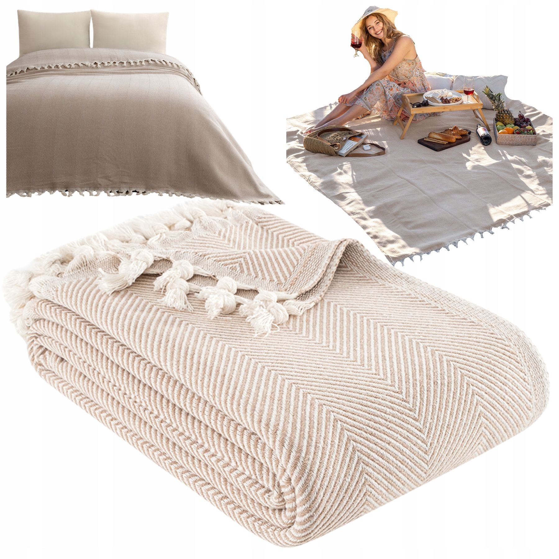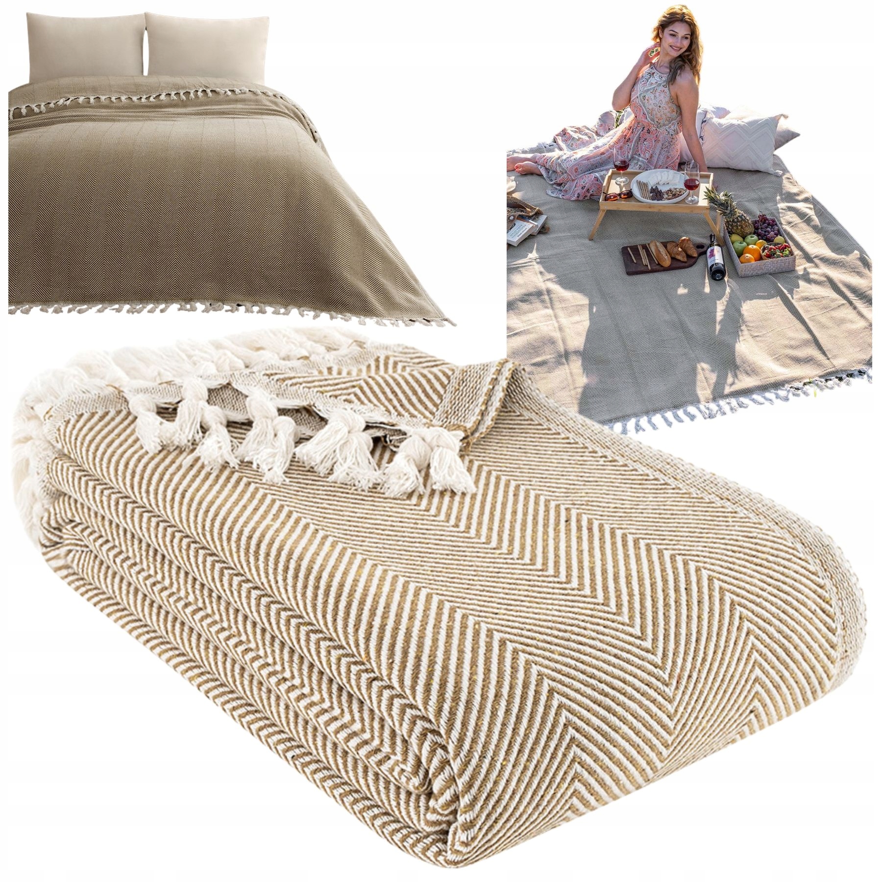 Narzuta na łóżko kanapę plażę piknik bawełniana 180x200 Miren beżowy70Kup!złAllegroDostawa: w Polsce Złóż skargę