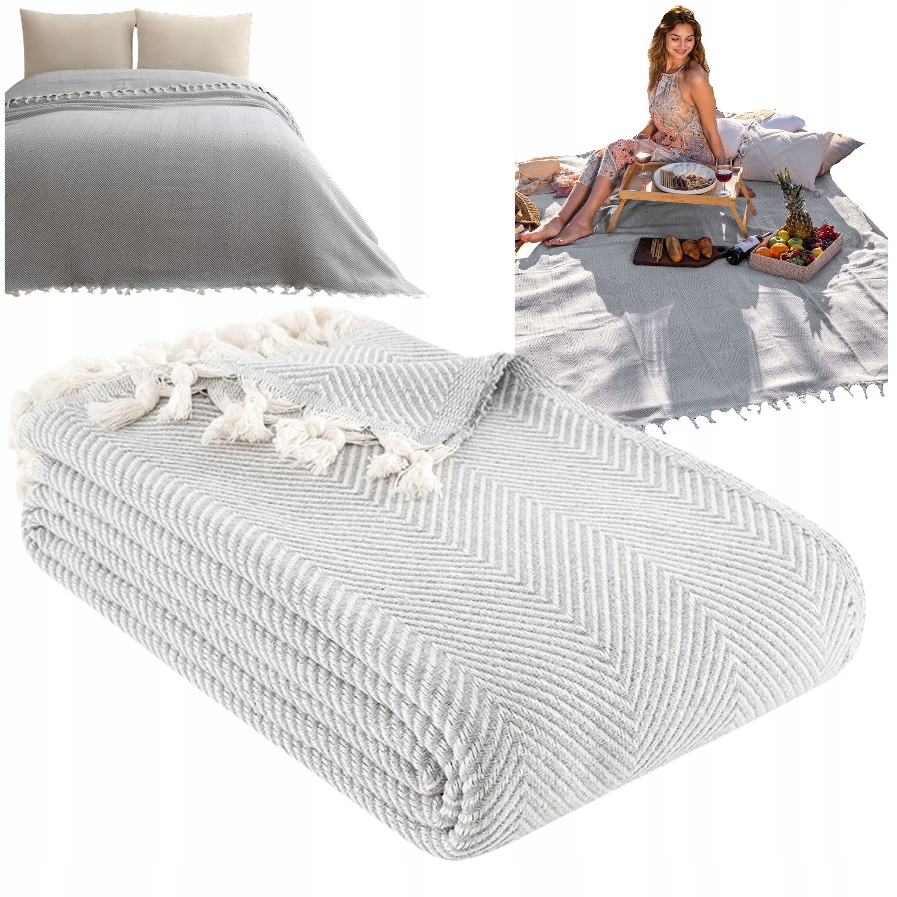 Narzuta na łóżko kanapę plażę piknik bawełniana 180x200 Miren szary70Kup!złAllegroDostawa: w Polsce Złóż skargę