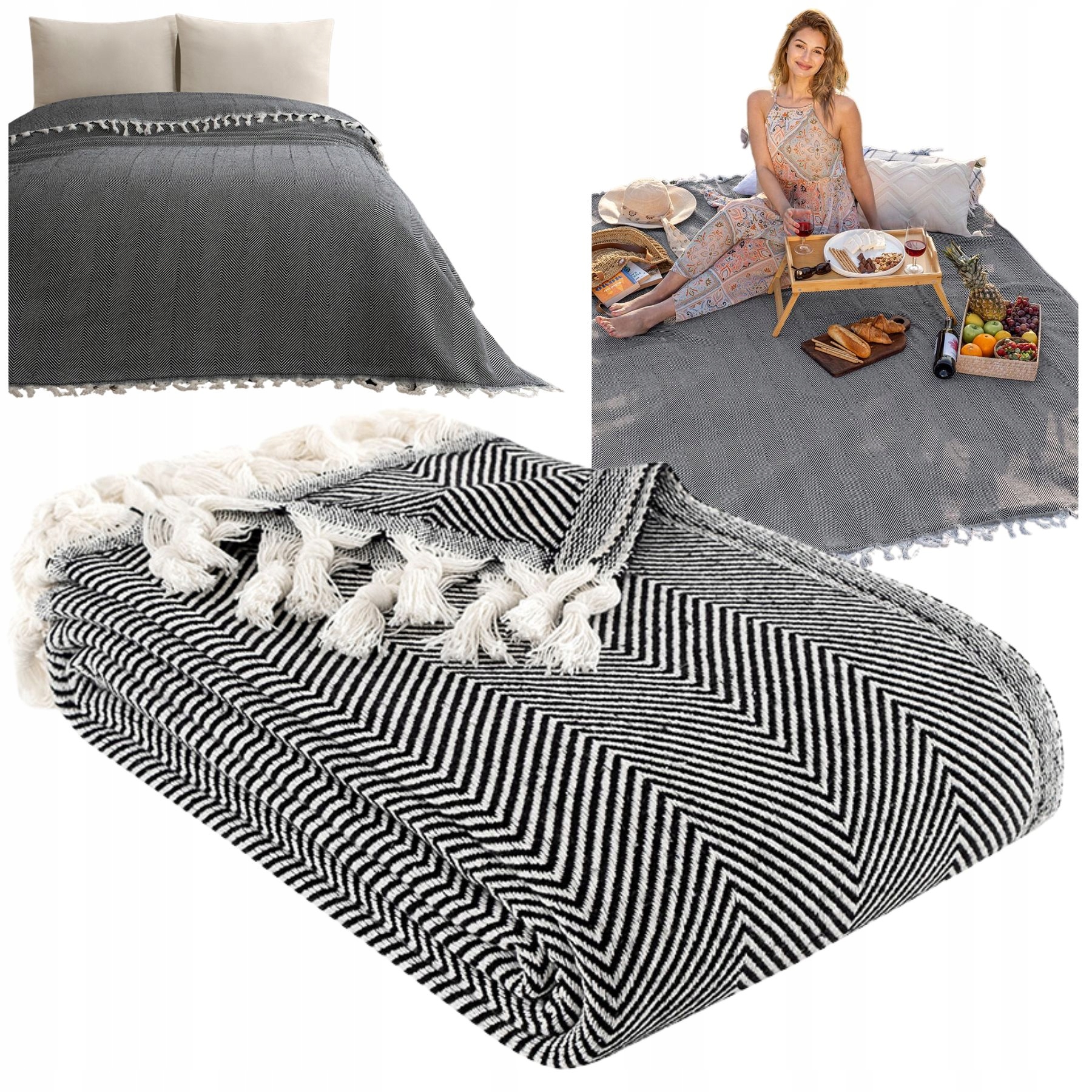 Narzuta na łóżko kanapę plażę piknik bawełniana 180x200 Miren czarny70Kup!złAllegroDostawa: w Polsce Złóż skargę