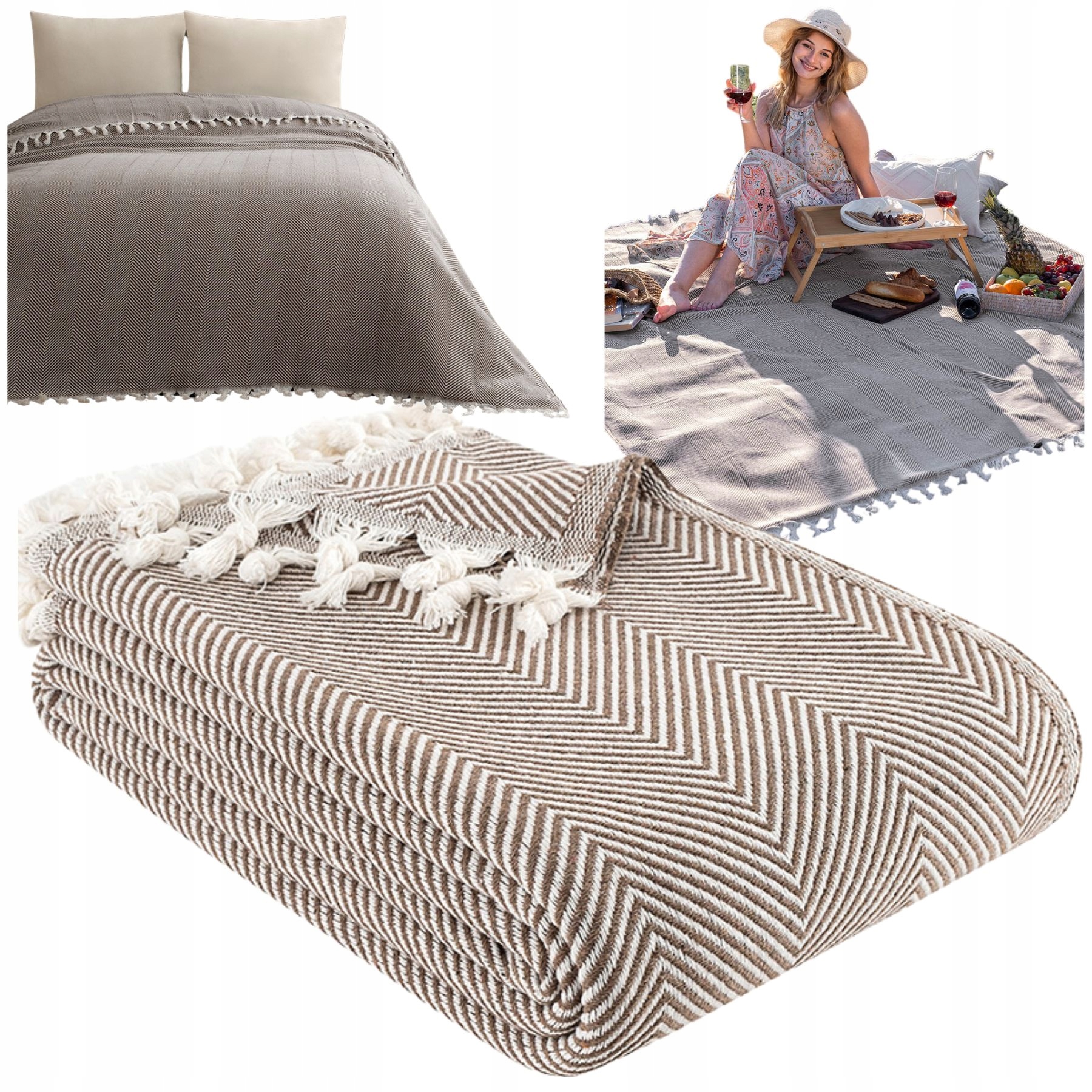 Narzuta na łóżko kanapę plażę piknik bawełniana 180x200 Miren brązowy70Kup!złAllegroDostawa: w Polsce Złóż skargę