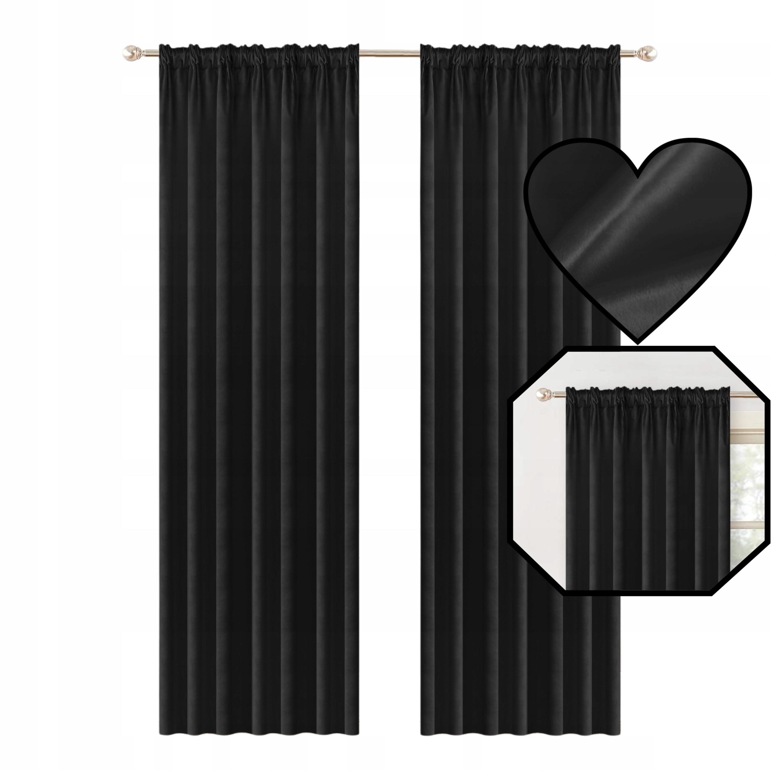 Zasłony Czarne 140x250 cm na taśmie Welur Velwet Styl i Komfort Glamour64Kup!złAllegroDostawa: w Polsce Złóż skargę