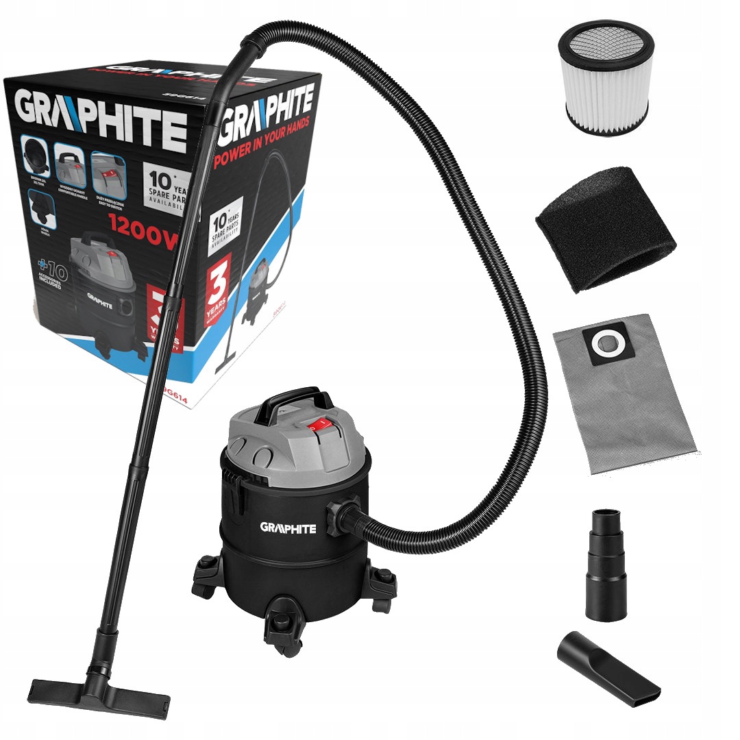 Akumulatorowy odkurzacz warsztatowy Graphite Energy+ 18 V to wszechstronne urządzenie do czyszczenia na sucho i mokro, zaprojektowane z myślą o użytkownikach ceniących mobilność i wygodę. Wyposażony w bezszczotkowy silnik, odkurzacz działa w systemie Energy+ marki Graphite, umożliwiając korzystanie z akumulatorów litowo-jonowych o pojemności 2 Ah lub 4 Ah (rekomendowana pojemność 4 Ah zapewnia do 21 minut pracy).