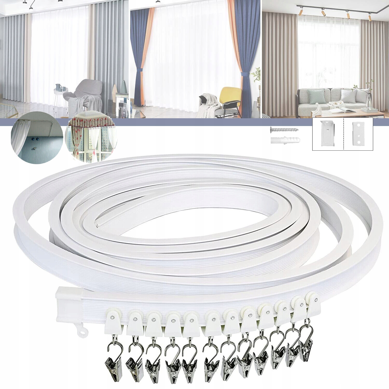 — karnisze montowane do sufitu pozwalają na zamknięcie nie tylko jednego otworu okiennego, ale także ściany nad nim. Takie rozwiązanie poprawia ogólny wygląd wnętrza pomieszczenia, takie zasłony tworzą poczucie integralności. Karnisze montowane do sufitu są najczęściej używane z konstrukcją szynową. W przypadku pomieszczeń z sufitem podwieszanym / naciąganym lub progiem ozdobnym na obwodzie należy wcześniej zapewnić możliwość montażu karnisza sufitowego.