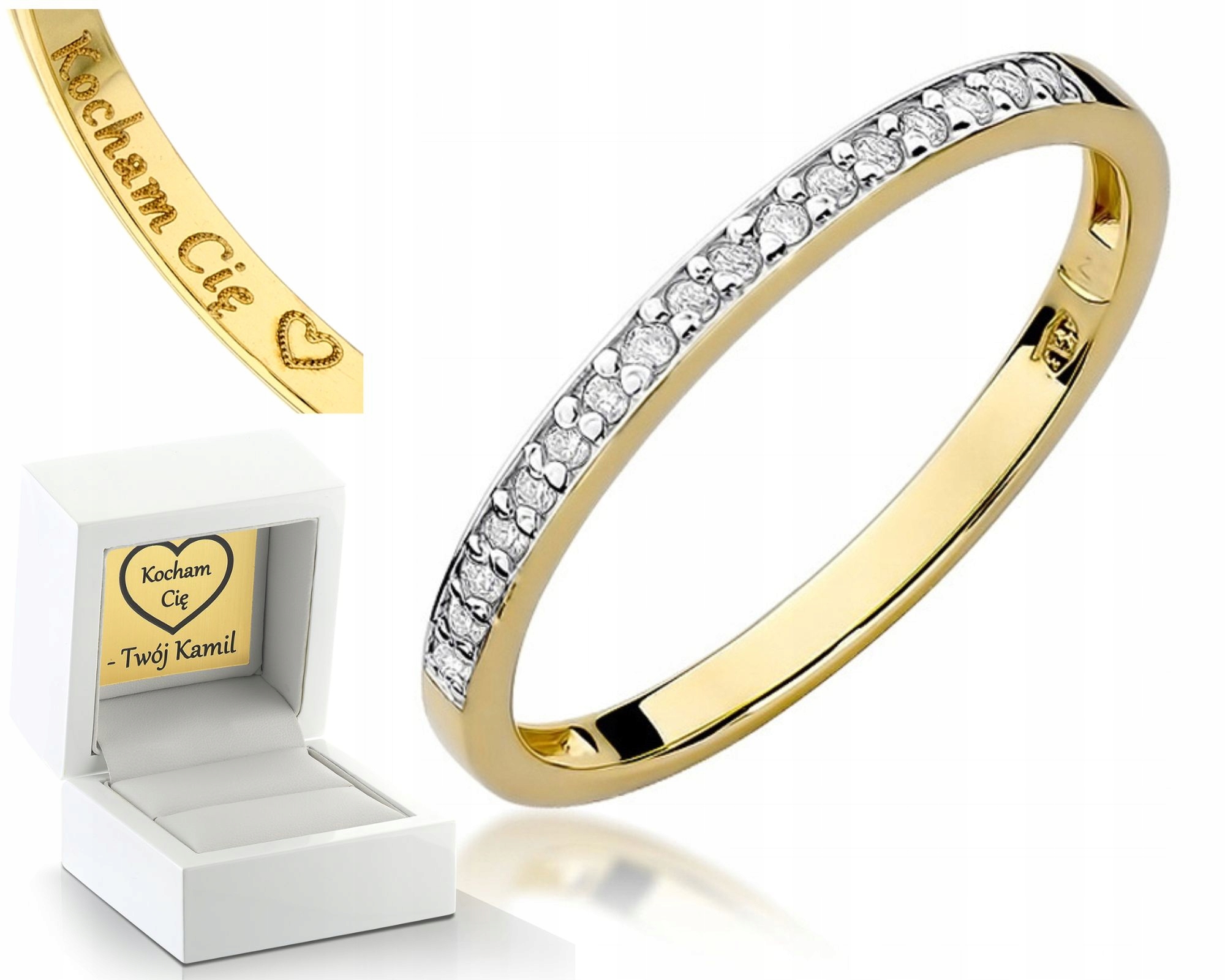 — klasyczny materiał na obrączki; wiele osób wyobraża sobie taką biżuterię jako nic innego jak złoto. Zauważ, że w tym przypadku (jak w każdej biżuterii) nie mówimy o czystym złocie, ale o opartym na nim stopie. Czystego złota nie używa się ze względu na jego wysoki koszt i miękkość; zanieczyszczenia zwiększają twardość materiału i jego odporność na zarysowania.Zawartość złota w materiale zmienia się w zależności od próbki; w jubilerstwie najpopularniejsza próbka 585 i 750, z odpowiednio 58,5% i 75% srebra - to najbardziej praktyczne opcje pod względem ceny, twardości, wyglądu i trwałości. Ponadto różne zanieczyszczenia nadają stopowi różne kolory, dlatego wyróżnia się następujące rodzaje złota: