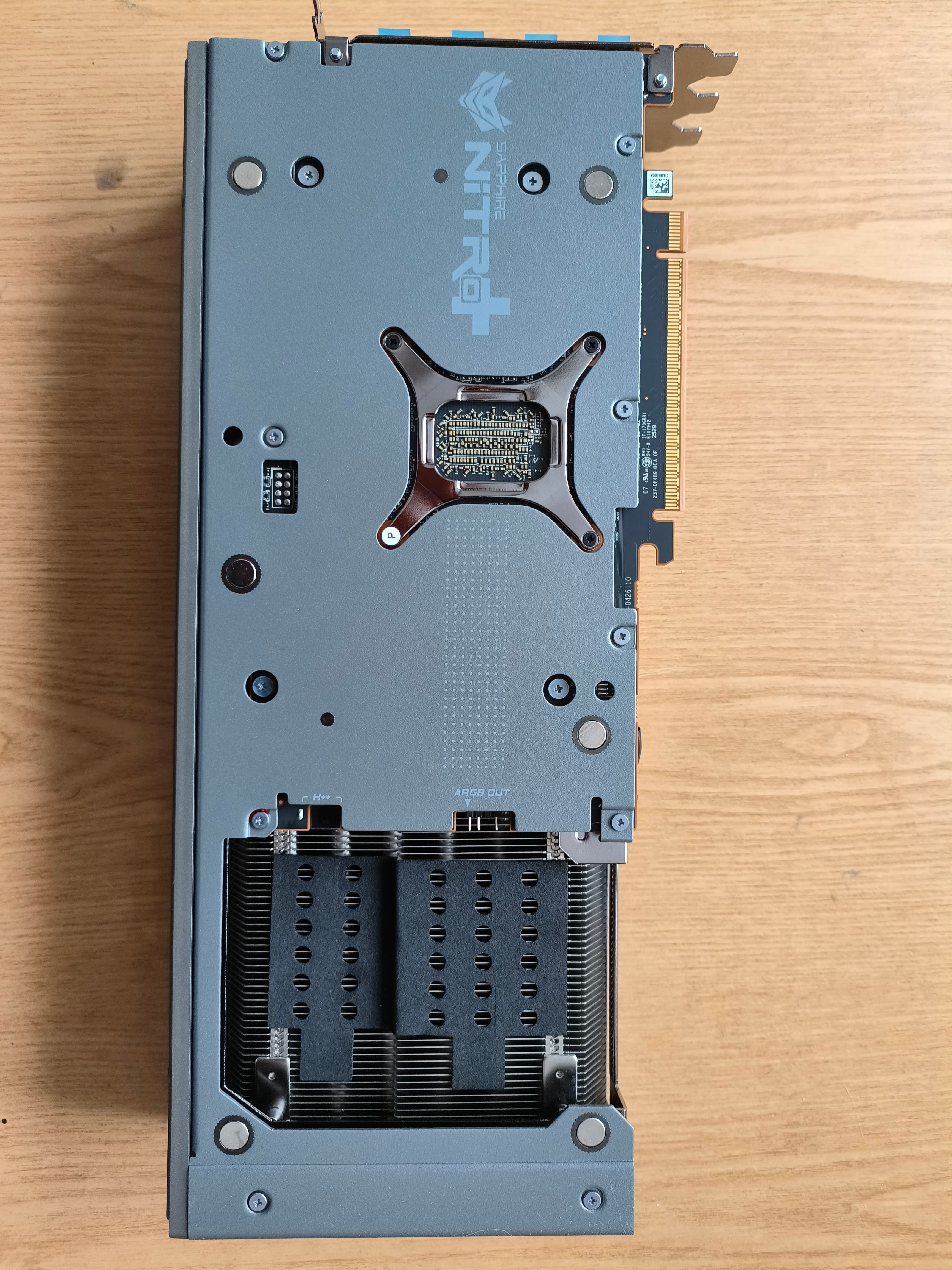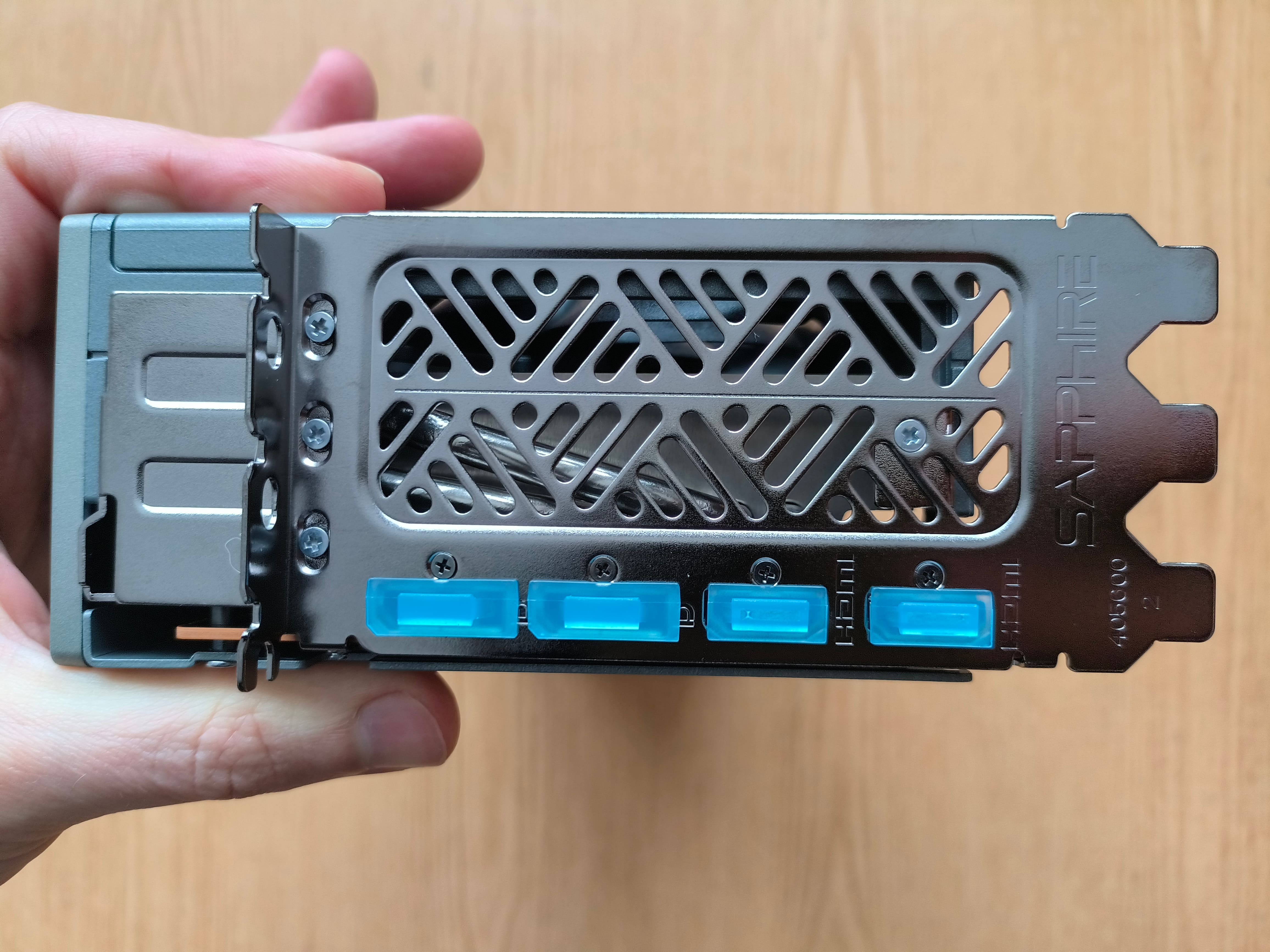 Щодо температур: GPU до 62-63°C, хотспот до 83-85°C, пам'ять 70-80°C (Samsung) на стандартних значеннях з коробки. Обороти вентиляторів від 1150 до 1700, залежно від ситуації, карта дуже намагається тримати їх якомога нижче, не виходячи при цьому за описані вище температурні показники. У мене була перед нею XFX Mercury, яку я повернув у магазин, і ця Nitro+ НАБАГАТО тихіша, і не видає жодного гудючого шуму.