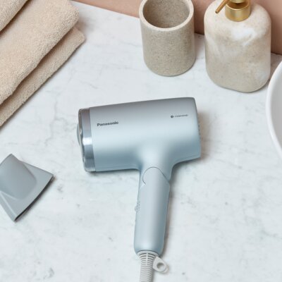 Idealna do użytku domowego i do włosów dzieci - nasza zaawansowana suszarka wyposażona jest w oscylacyjną dyszę do szybkiego suszenia, która rozprowadza strumień powietrza, zapobiegając powstawaniu gorących miejsc. Technologia nanoe™ chroni włosy przed uszkodzeniami spowodowanymi szczotkowaniem oraz zwiększa gładkość i nadaje włosom blask.