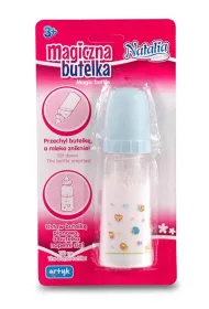 W zestawie: pieluszka, butelka ze znikającym płynem 8 cm., smoczek, sztućce