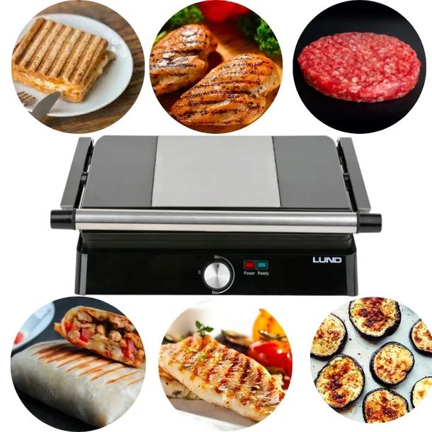 Toster Opiekacz Kontaktowy grill elektryczny Lund 67451 czarny 2200 WELEKTRYCZNY GRILL STOŁOWY DO DOMU I OGRODU 2200WMocny grill elektryczny przeznaczony do szybkiego przygotowanie mięs, ryb, warzyw i tostów.Funkcja regulacji płyt grzewczych pozwala dopasować je do wysokości opiekanych produktów.Dodatkową, dwukrotnie zwiększającą powierzchnie grillowania zaletą jest możliwość rozłożenia go do 180 stopni.Dane techniczne:Moc: 2000W, 220-240V, 50/60HzRozmiar płyty: 29 x 23cmPowierzchnia zamkniętego grilla: 667 cm2Powierzchnia otwartego grilla: 1334 cm2Nieprzywierająca, łatwa w czyszczeniu powłoka płytyElementy stali nierdzewnej na obudowieRegulacja temperaturyWskaźnik zasilania i gotowości3 możliwości grillowania - grill złożony, 150 złErli.plПоскаржитисьКупити!