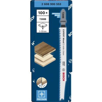 Bosch Brzeszczot Professional Expert Wood 2-side Clean T308B (100 szt.)Zapewnienie „czystej strony” cięcia wyrzynarki na widocznej części materiału od zawsze było sztuką wśród stolarzy. Czasami można odwrócić obrabiany przedmiot, innym razem samą wyrzynarkę można trzymać do góry nogami. Można też użyć EXPERT Wood 2-side clean, który oferuje idealne cięcie bez wyrywania po obu stronach dzięki podwójnym rzędom zębów.Ціна від 610 złПорівняти ціни та купити Bosch Brzeszczot Professional Expert Wood 2-side Clean T308B (100 szt.)Morele.net (Польща) →610 złProshop.pl →617 złMediaexpert.pl →650 złПорівняти ціни3→