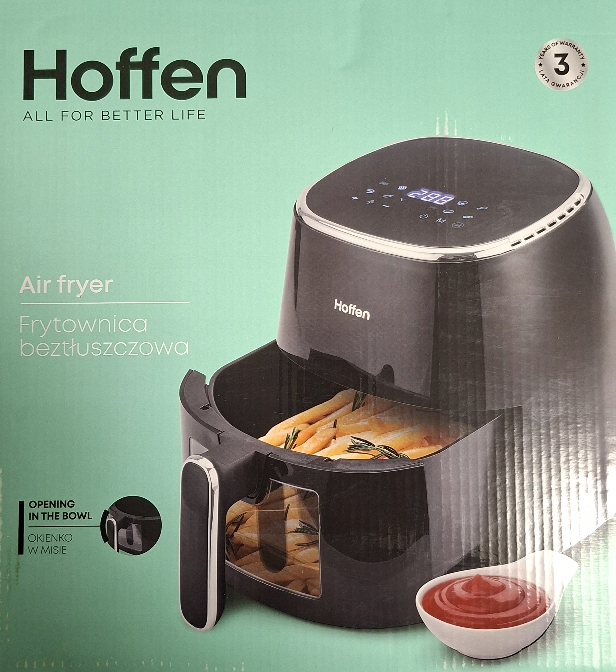 | Air Fryer Frytkownica beztłuszczowa z okienkiem Hoffen, 1550 W, 5 l, czarna