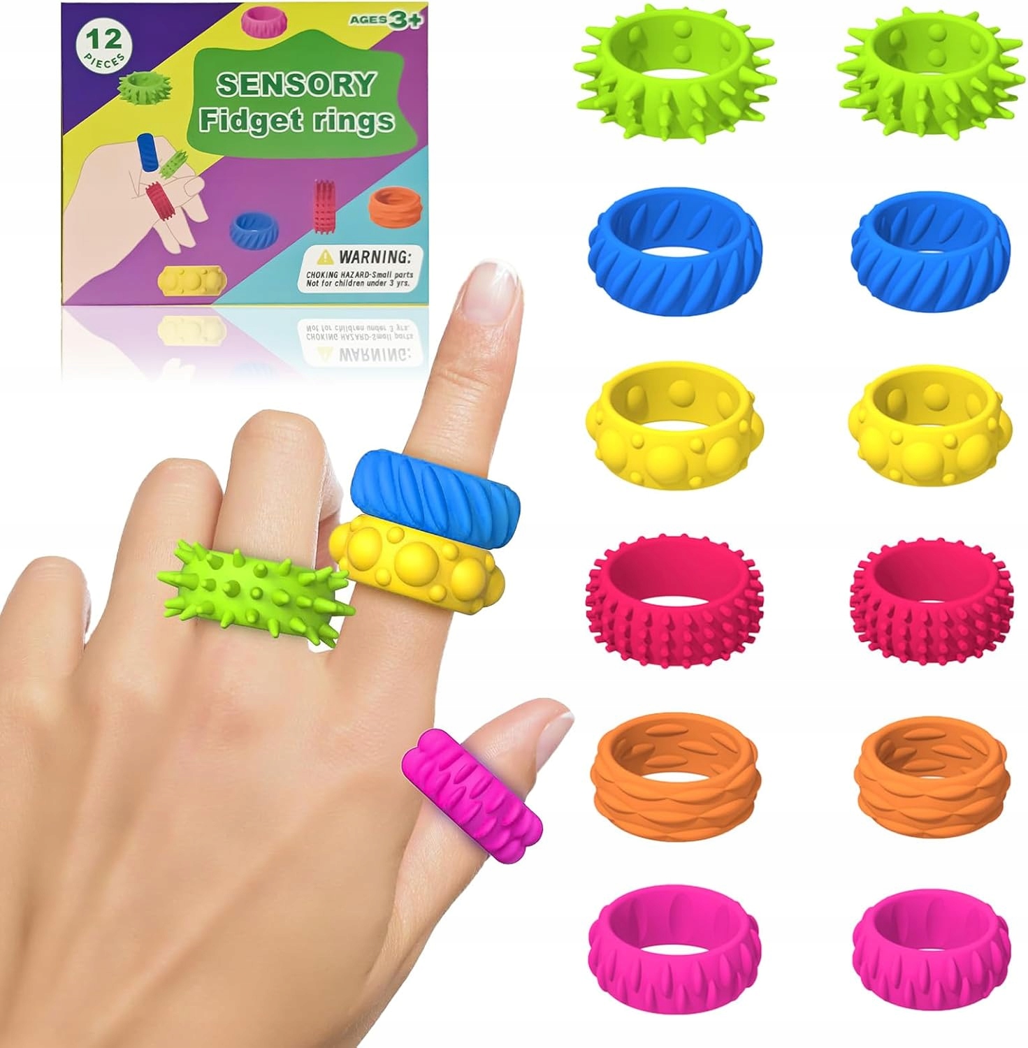Zestaw 12 Pierścieni Sensorycznych – Antystresowe Fidget dla Dzieci45Купити!złAllegroДоставка: по Польщі Поскаржитись