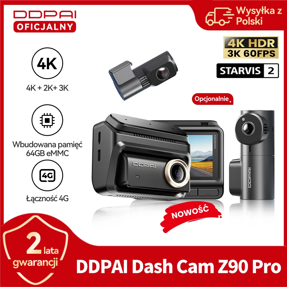 Nowa kamera samochodowa DDPAI Z90Pro 4K+2K z podwójnym obiektywem, Sony STARVIS 2 IMX678, HDR, rejestrator jazdy, ADAS, sterNowa kamera samochodowa DDPAI Z90Pro 4K+2K z podwójnym obiektywem, Sony STARVIS 2 IMX678, HDR, rejestrator jazdy, ADAS, sterowanie głosowe, tryb parkowania, WiFi, wbudowany 64GB eMMC 772 złAliExpress PLПоскаржитисьКупити!