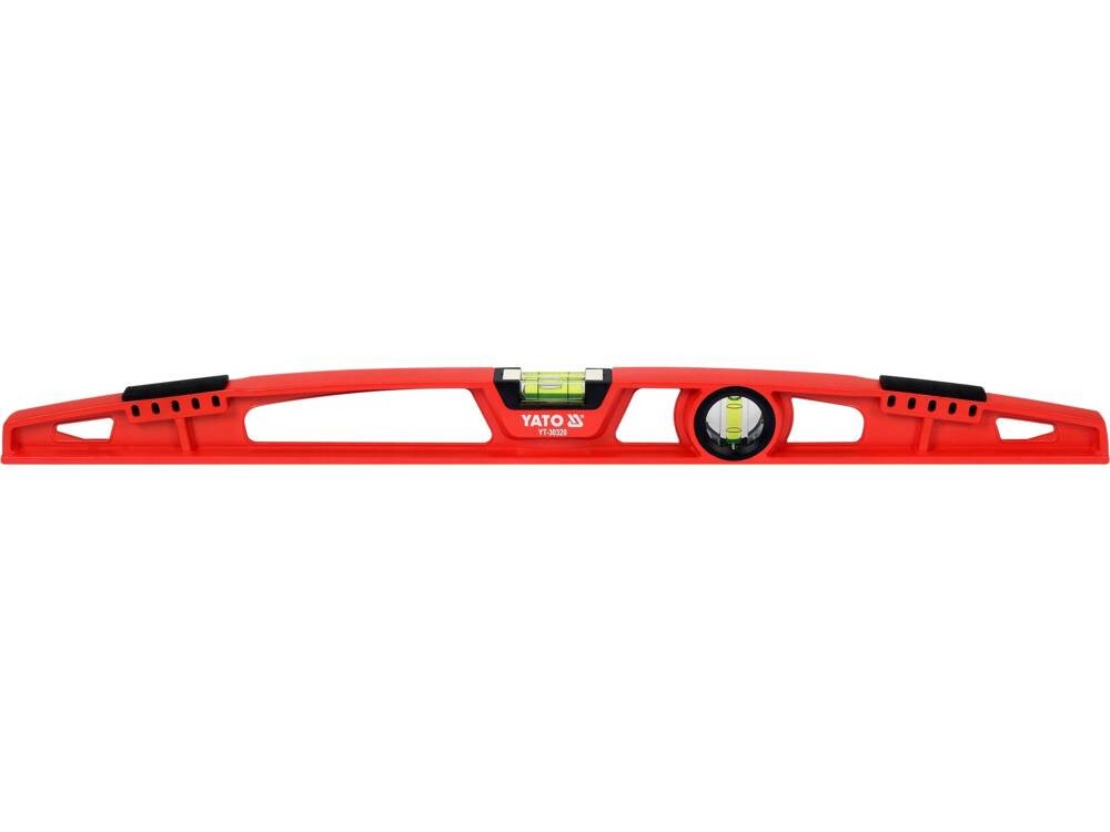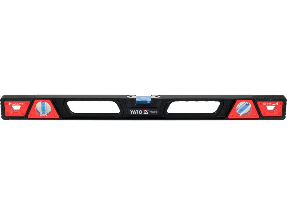 Yato Poziomnica magnetyczna 60 cm aluminiowa wstrząsoodporna odbojniki magnesy 0.73kg YT-30311Wytrzymała, odporna na wstrząsy poziomnica aluminiowa. Dwa duże uchwyty ułatwiają wykonywanie pomiarów. Końce poziomnicy, zabezpieczone elastycznymi odbojnikami odpornymi na uderzenia, umożliwiają pobijanie młotkiem. Poziomnica wyposażona jest w trzy libelle: pion, poziom, 45 stopni. We frezowanej podstawie umieszczono 5 magnesów. dokładność libelli: 0.5 mm/m = 0.027˚ podstawa z zaznaczoną podziałką centymetrową powierzchnia: malowana proszkowo 59 złRotor1.plПоскаржитисьКупити!
