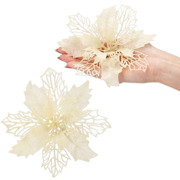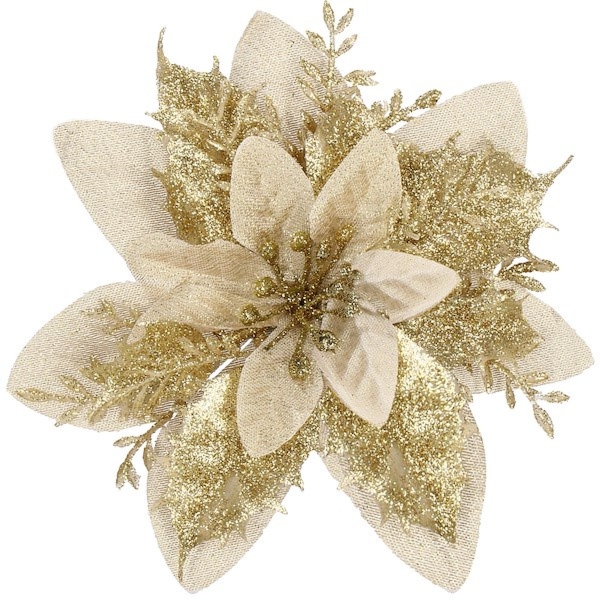 Springos Poinsecja sztuczny kwiat, gwiazda betlejemska kremowo-złota z brokatem5Купити!złShoperly.plДоставка: по Польщі ПоскаржитисьPoinsecja, czyli inaczej gwiazda betlejemska to produkt mocno kojarzący się nam z okresem Świąt Bożego Narodzenia. Jej urok tkwi przede wszystkim w pięknych, rozłożystych listkach z charakterystycznym ще→i rożkami. Kremowo-złoty sztuczny kwiat dostępny w naszej ofercie dodatkowo przyozdobiony został brokatem, który podbija niesamowity wygląd dekoracji. Gwiazda betlejemska stanowi nie tylko piękną ozdobę samą w sobie, ale także efektowny dodatek do stroików czy urozmaicenia wyglądu choinki. Kwiat przymocowany jest do drucika, który znacznie ułatwi ulokowanie poinsencji w różnych miejscach. Warto też zwrócić uwagę na materiał z jakiego wykonano listki. Świetnie imituje on welur, przez co kwiat wygląd…