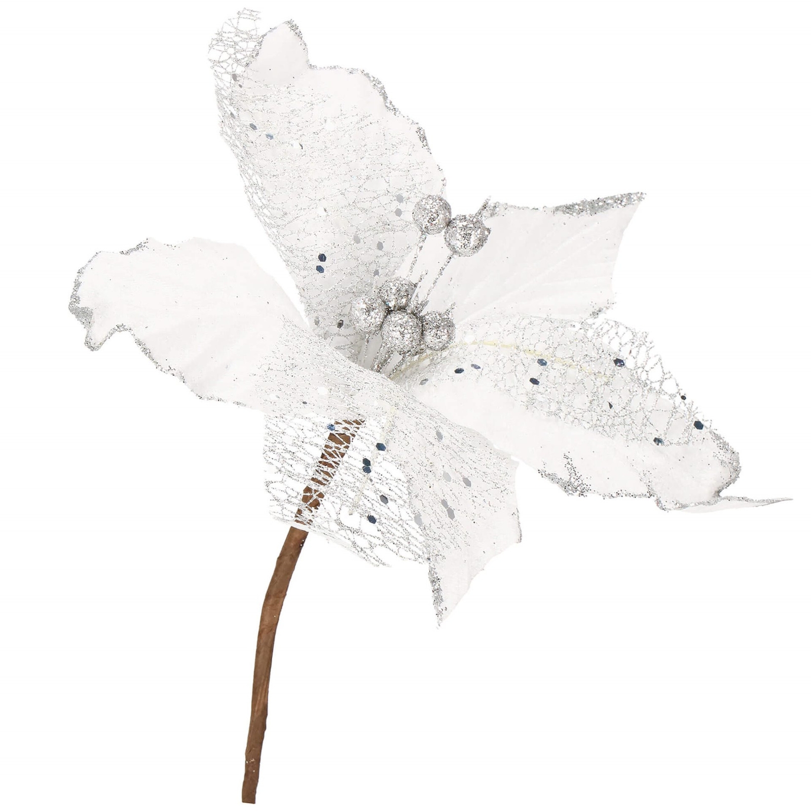 Springos Gwiazda betlejemska, sztuczny kwiat poinsecja srebrna z brokatem, na klipsie5Купити!złSportservice.plПоскаржитисьDoskonale odwzorowana sztuczna gwiazda betlejemska marki Springos ozdobi stroiki świąteczne, wieńce, girlandy i drzewka bożonarodzeniowe. Jako jeden z wielu symboli świąt poinsecja będzie pasowała do ще→wszelkiego rodzaju dekoracji wigilijnych. Dzięki użyciu miękkiego materiału i precyzji wykonania kwiat do złudzenia przypomina swój żywy odpowiednik. Delikatne, brokatowe zdobienia nadają poinsecji blasku i elegancji. Rozłożyste, charakterystycznie postrzępione płatki zostały wykonane z dbałością o najmniejszy szczegół. Długa nóżka pozwala na łatwe umieszczenie dekoracji w docelowym miejscu.Parametry:Marka: SpringosKolor: srebrny z brokatemIlość sztuk w opakowaniu: 1Rozmiar: 13x13 cmIlość płatków:…